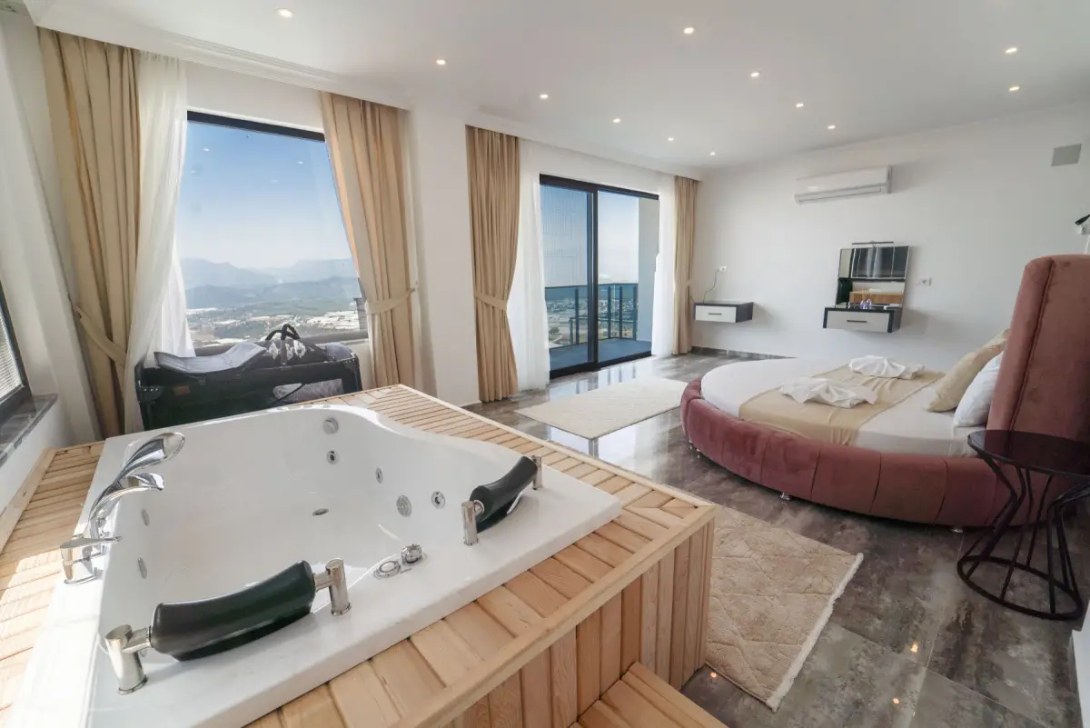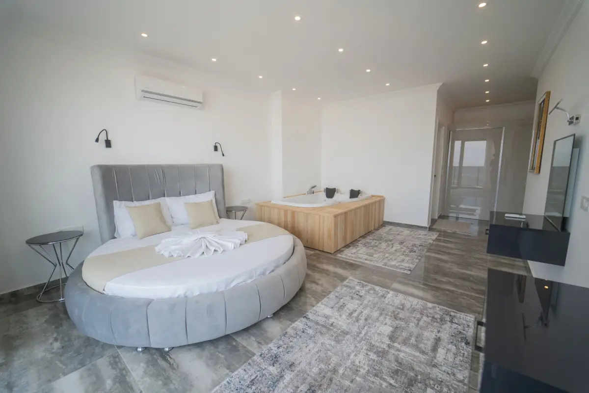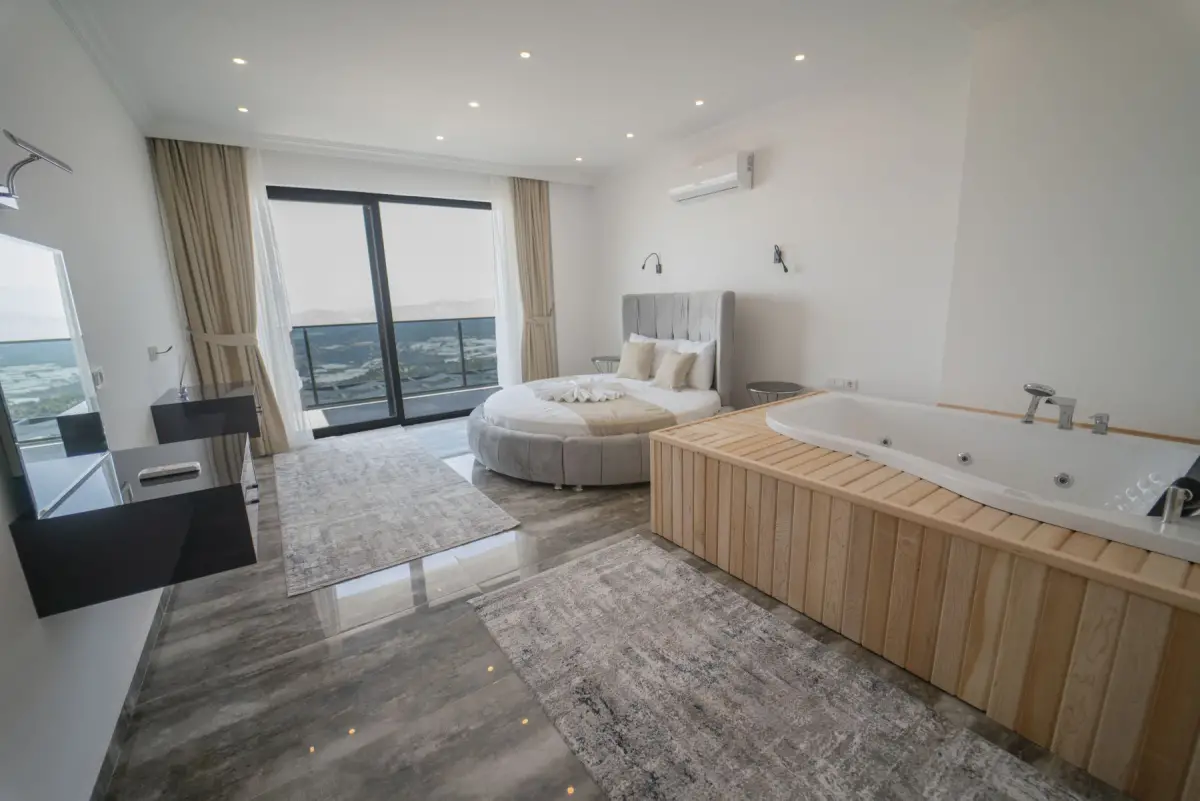 - Yatak Odası 1: 1 Çift Kişilik Yatak, Jakuji, Komodin, Banyo/WC, Klima, Elbise Dolabı
