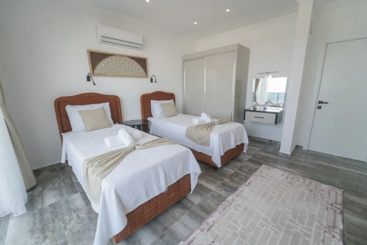 - Yatak Odası 3: 2 Tek Kişilik Yatak, TV, Banyo/WC, Klima, Komodin, Elbise Dolabı