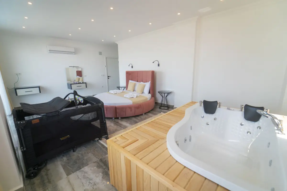 - Yatak Odası 2: 1 Çift Kişilik Yatak, Jakuji, Banyo/WC, Komodin, Klima, Elbise Dolabı