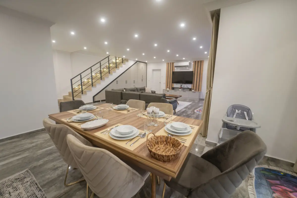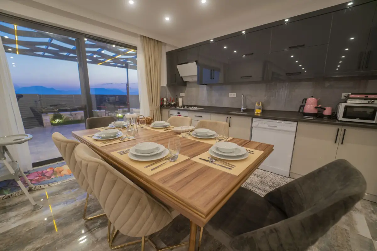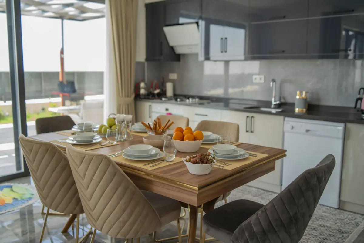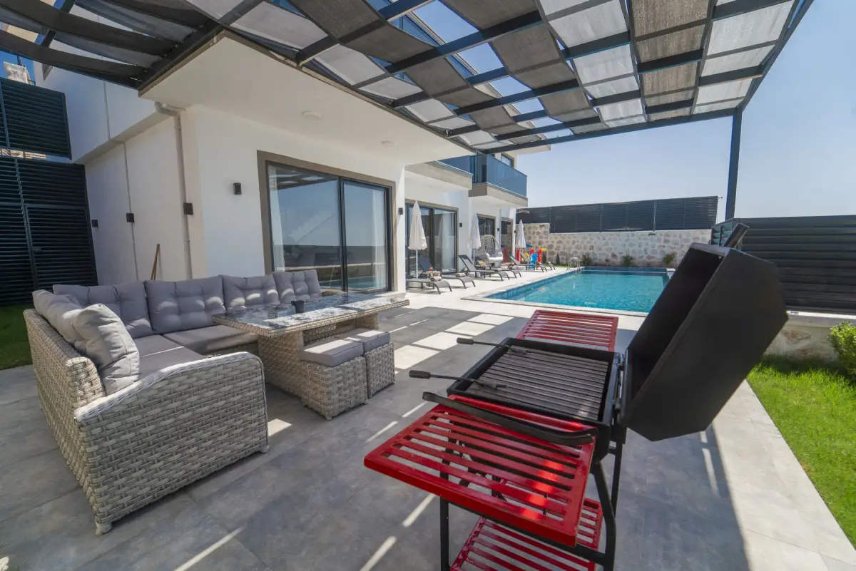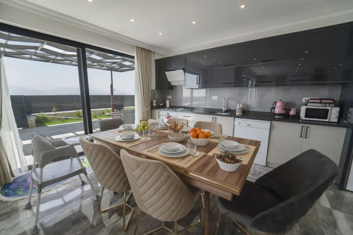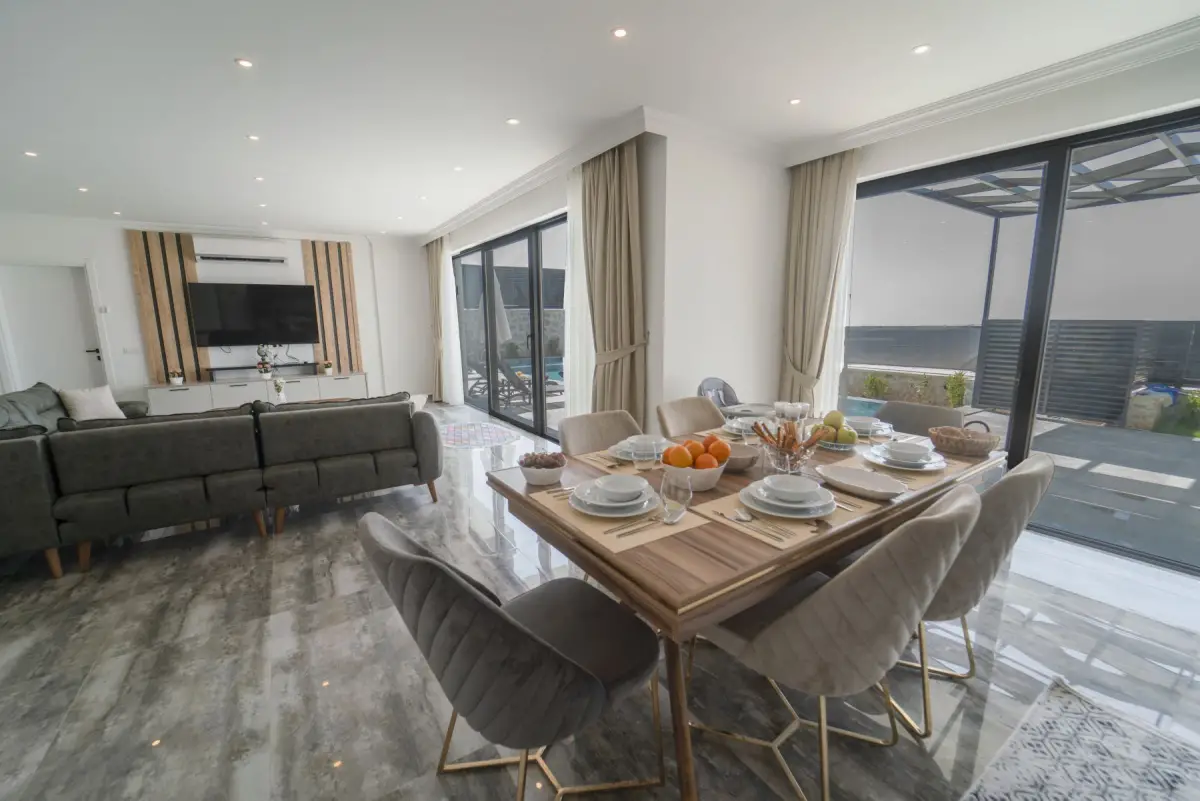 - TV, Jakuji, Banyo/WC, Klima, Kanepe/Oturma Gr., Modern Mobilya, Havuz Terasına Çıkış, Yemek Masası, Mikrodalga fırın, Fırınlı Ocak, Fırın, Bulaşık Makinesi