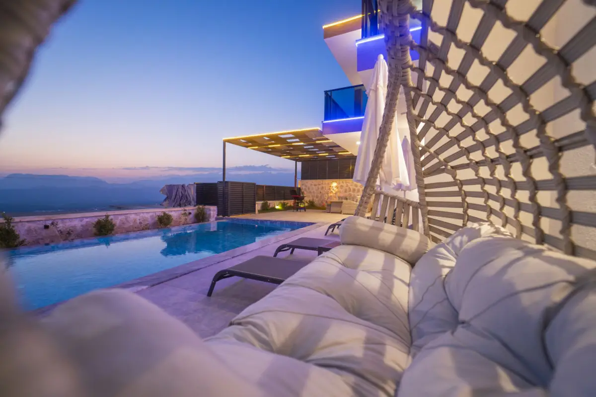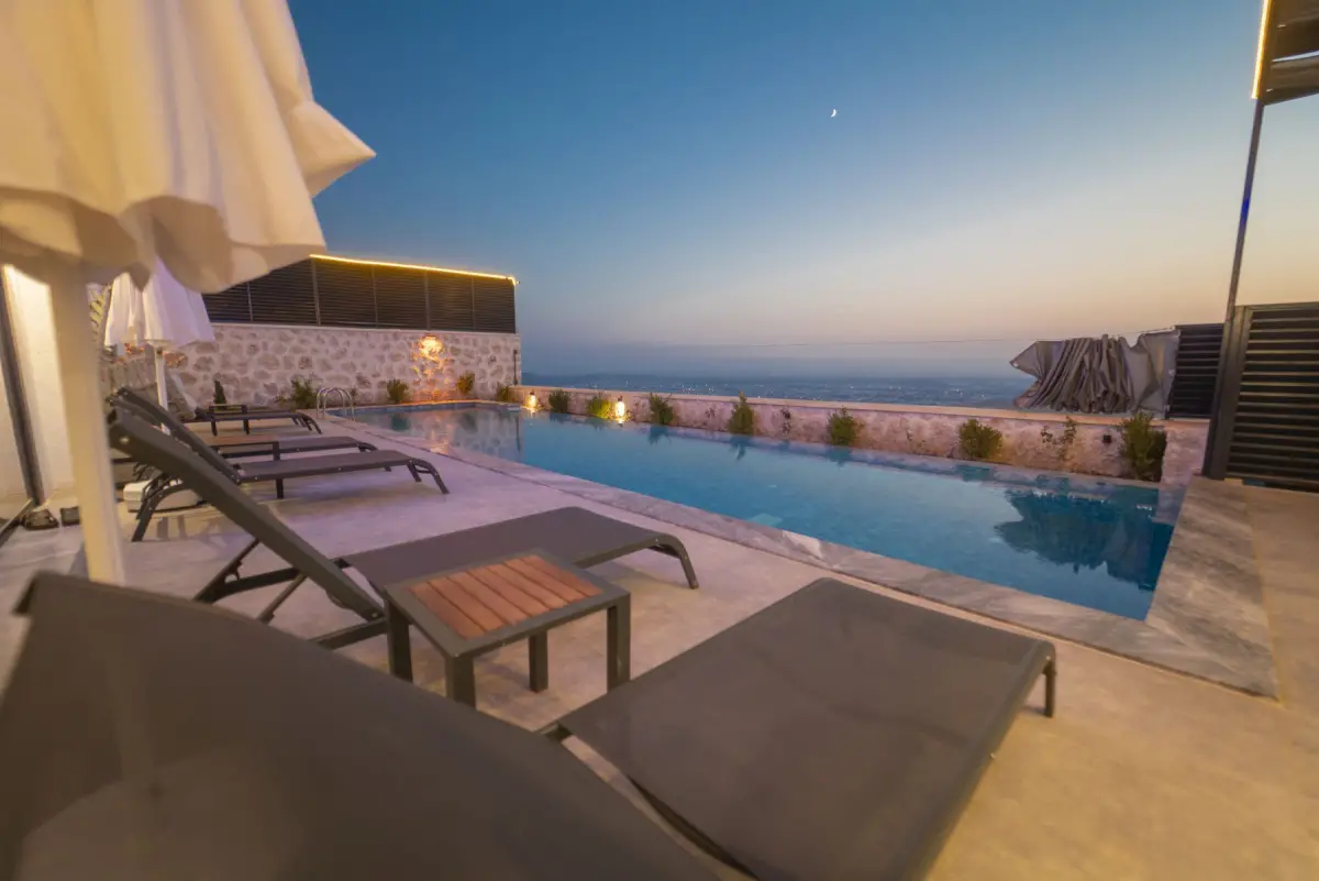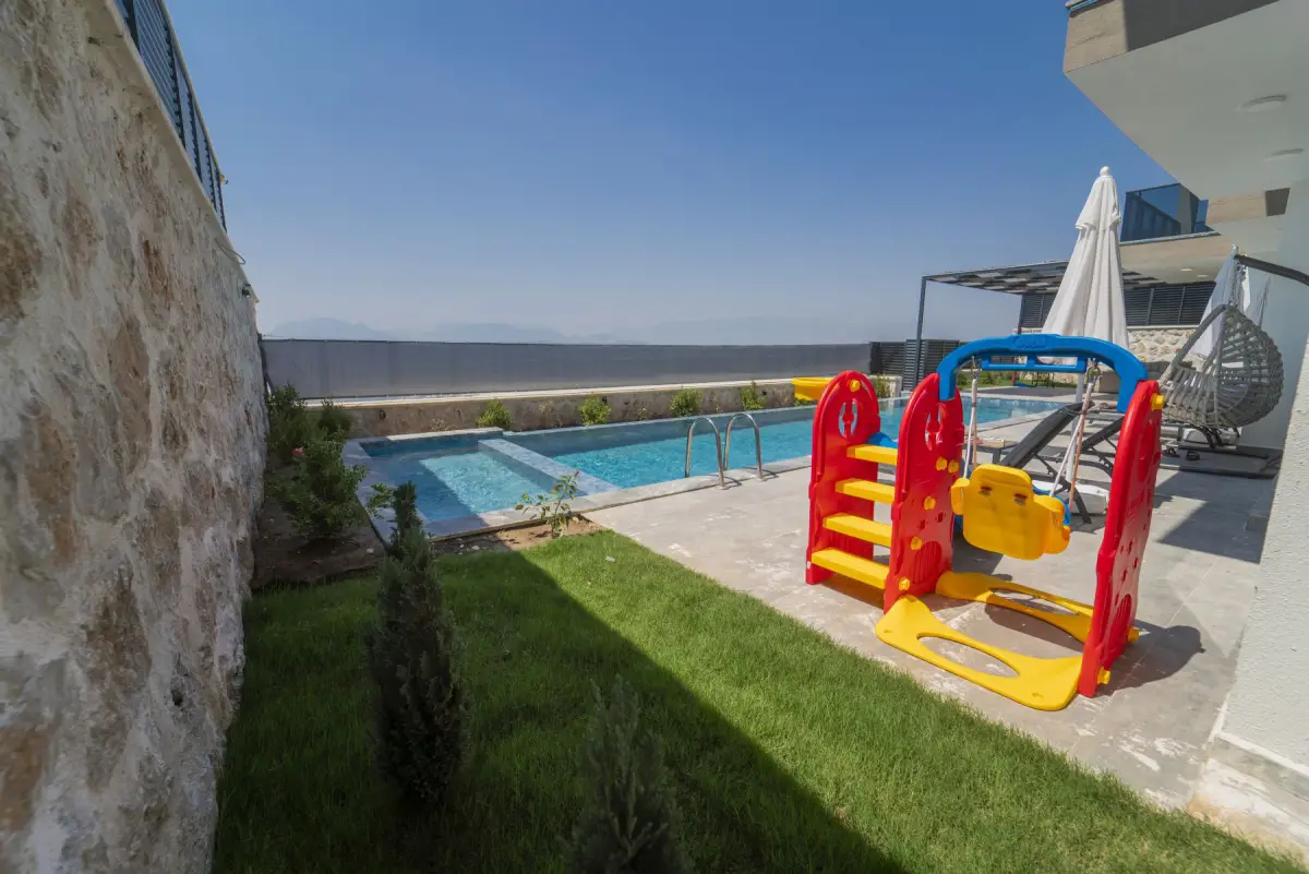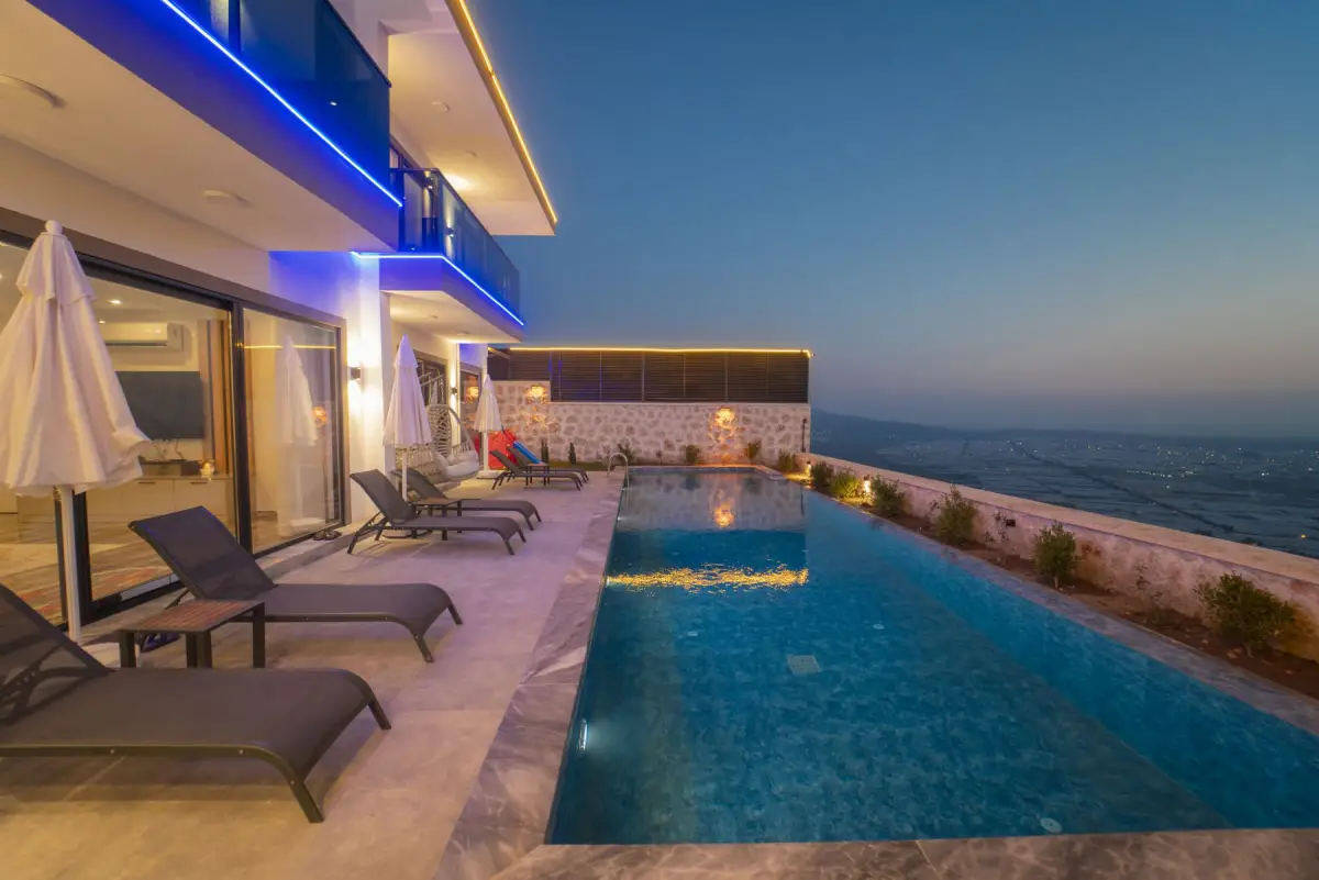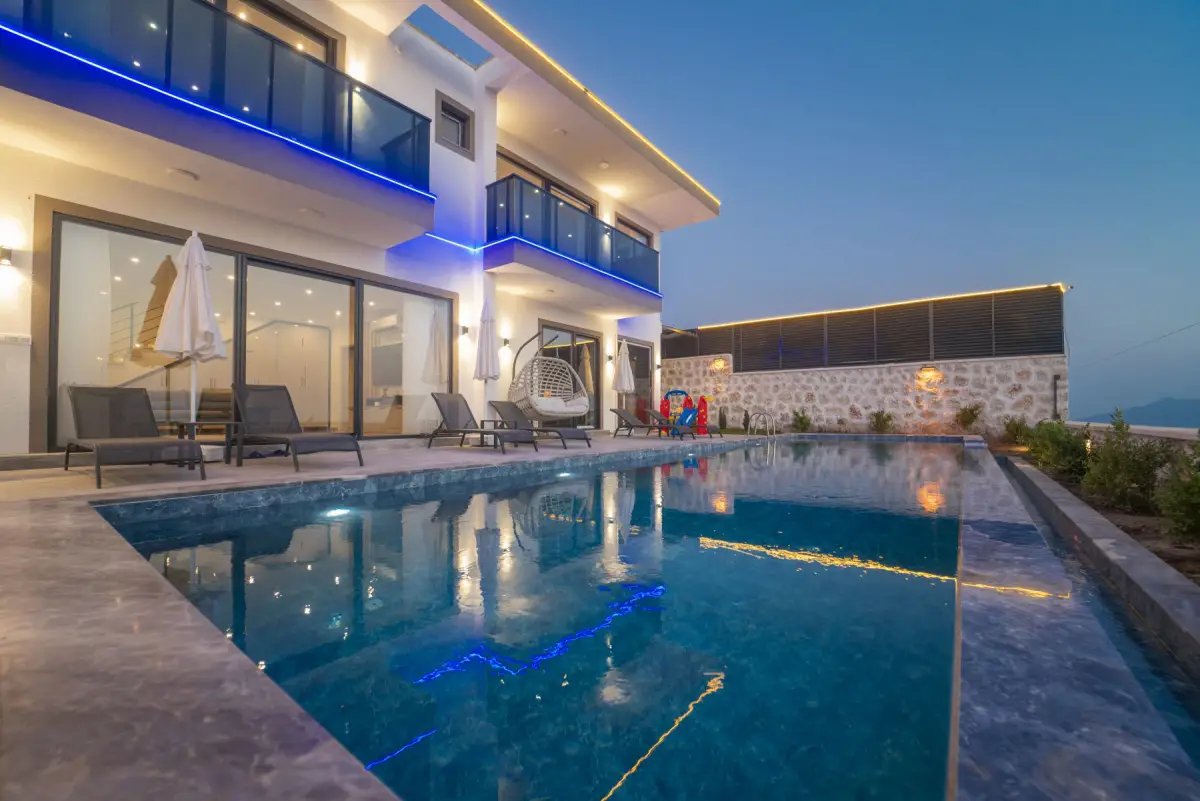 Lüks kiralık villa Lokum, Kalkan Çavdır mevkiinde, doğa ile iç içe bir konumda yer almaktadır. Villamız 3 yatak odasına sahiptir ve 6 kişilik konaklama kapasitesine sahiptir. Ayrıca, 2 odasında jakuzi bulunmaktadır. Rahatlık önceliği olan villamız, özellikle geniş aileler ve muhafazakar aileler için ideal bir tercih sunmaktadır. Kapılarını, dış dünyadan uzakta, sessiz ve sakin bir tatil geçirmek isteyen misafirlerimize açmaktadır. Çocuklarınız için her şey düşünülmüş olan villamızda çocuk oyun alanı ve çocuk havuzu bulunmaktadır.