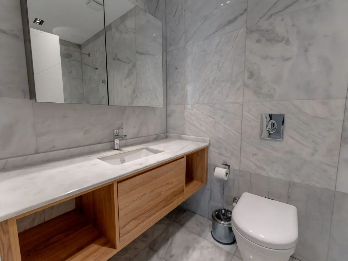 1. Yatak Odası: İki tek kişilik yatak, klima, komodin, elbise dolabı, banyo tuvalet.
