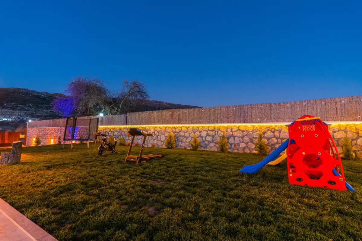 Villa Vip Kalkan, Saribelen mevkiinde bulunan çift Jakuzili, 3 yatak odasi ile 7 kisilik konaklamalara imkan saglamaktadir. Oldukça modern ve lüks bir dizayna sahip olan Villa Vip, genis bahçe ve havuz alanina sahiptir. Kapali, isitmali havuz, sauna, buhar odası gibi opsiyonlari bulunmakta olup tatilinizi keyifli geçirmeniz adina her sey düsünülmüstür.Villamızda eğlence imkanı olarak masa tenisi, langırt, salıncak, kaydırak, trambolin ve çocuk oyun alanı mevcuttur. Spor yapabilmeniz için de koşu bandı ve koşu speed bike bulunmaktadır. Ayrıca salondaki televizyonun altında görsel şömine de bulunmaktadır. Kapali otoparki mevcuttur. Villamiz oldukça güzel bir manzaraya sahip, özel korunakli havuzlu muhafazakar ve genis aileler için ideal bir tatil villamizdir.