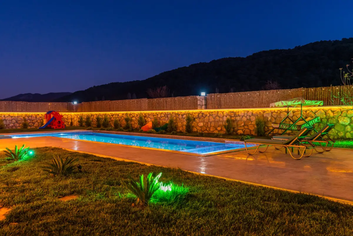 Boyu: 13 mt, Eni: 4 mt, Derinligi: 165 cm. olan havuzu bulunmaktadir.