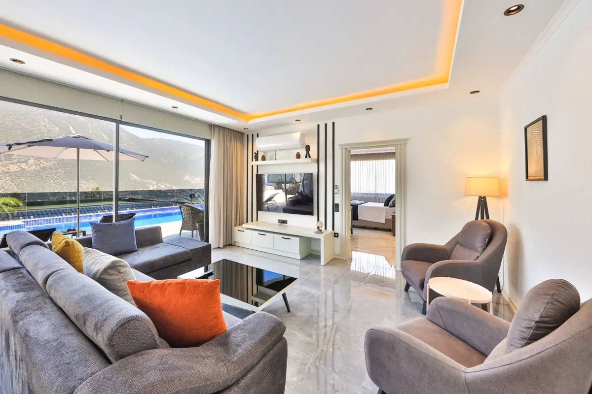 Şık Tasarım: Villamız, şık bir tasarıma sahiptir ve konforlu bir konaklama deneyimi sunar.